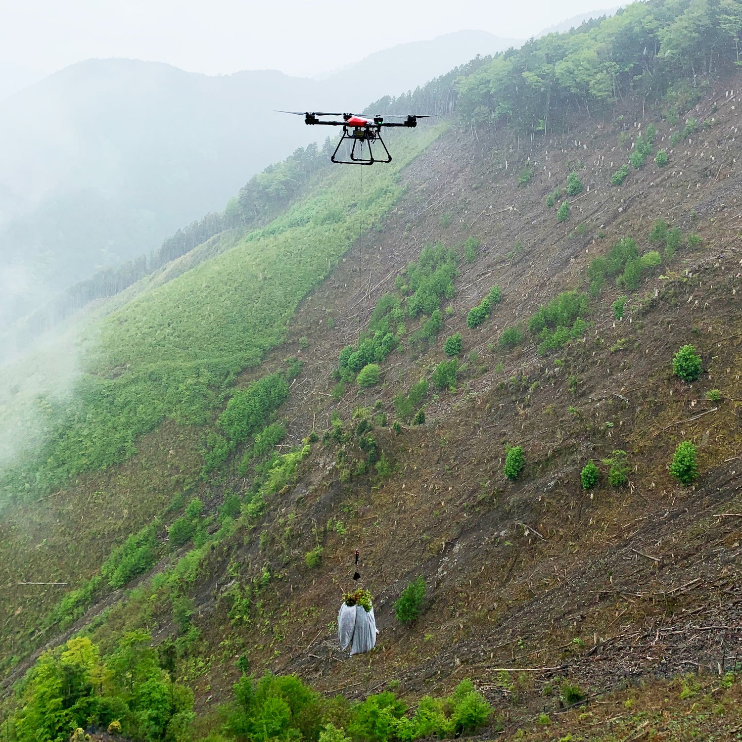 ドローンを活用した、植林・造林作業の様子①